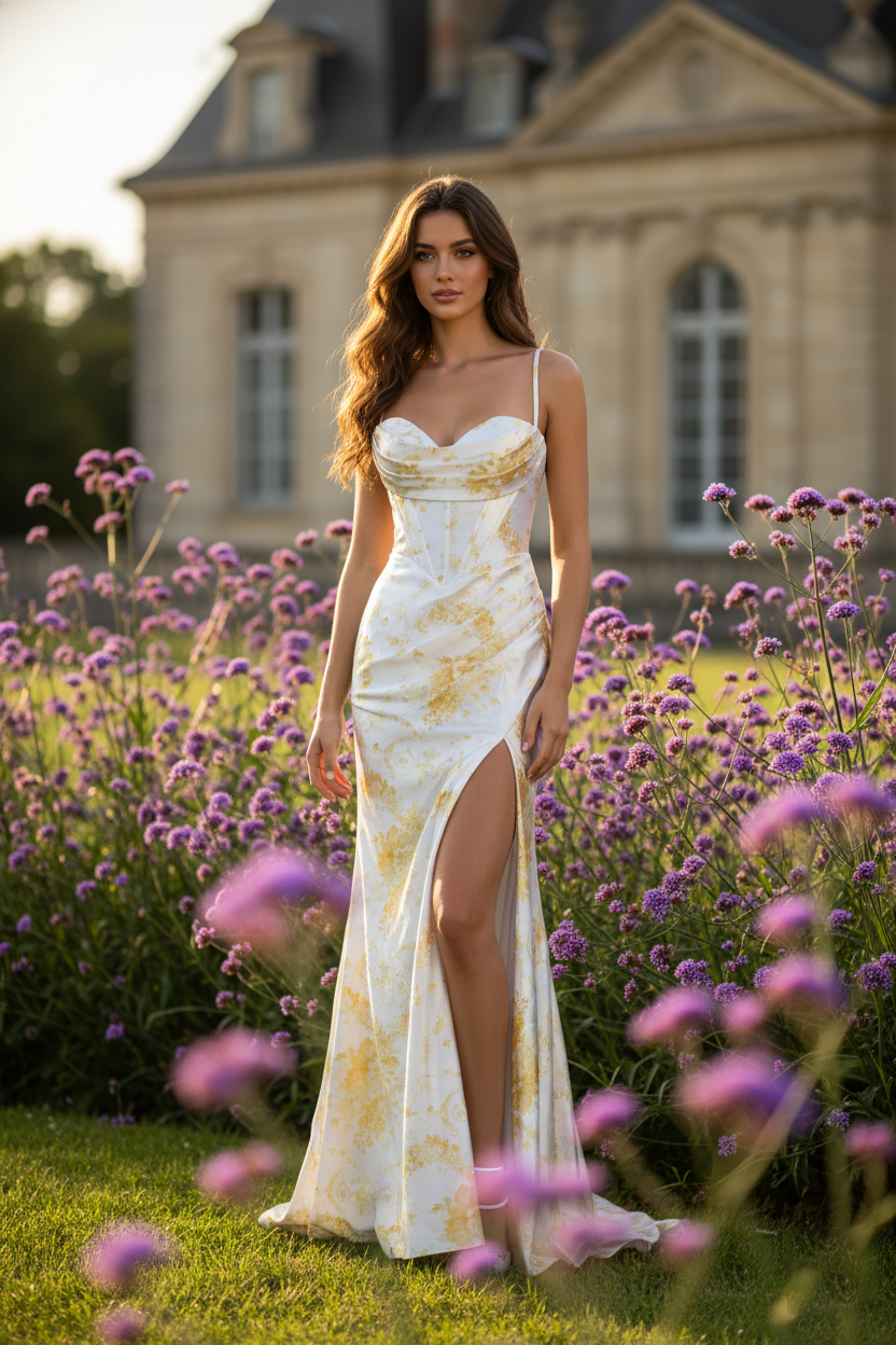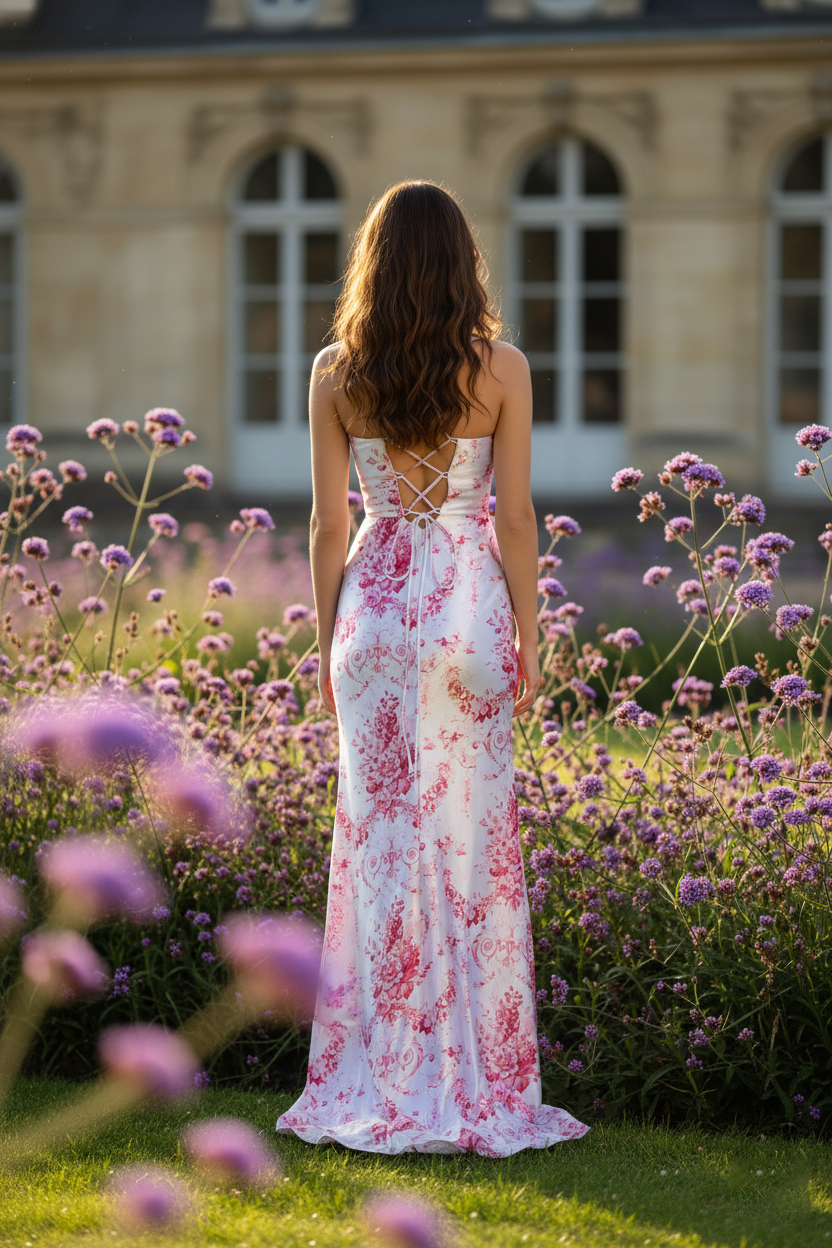 Embrace timeless elegance with this stunning floral print prom dress that combines delicate femininity with modern sophistication. Featuring a beautiful pink and white floral pattern, this fitted gown is designed to accentuate your silhouette while making a memorable impression.