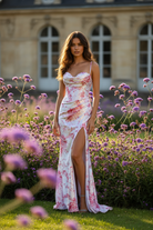 Floral Print Prom Dress - Spaghetti Strap Gown -TFB 8076