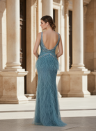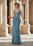 Luxury Deep V-Neck Crystal Beaded Bodice Feather Mermaid Evening Gown TFB8052