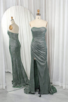 Shimmering Glitter Knit Strapless Ruched Mermaid Prom Dress TFB 8028 | blissfulprom