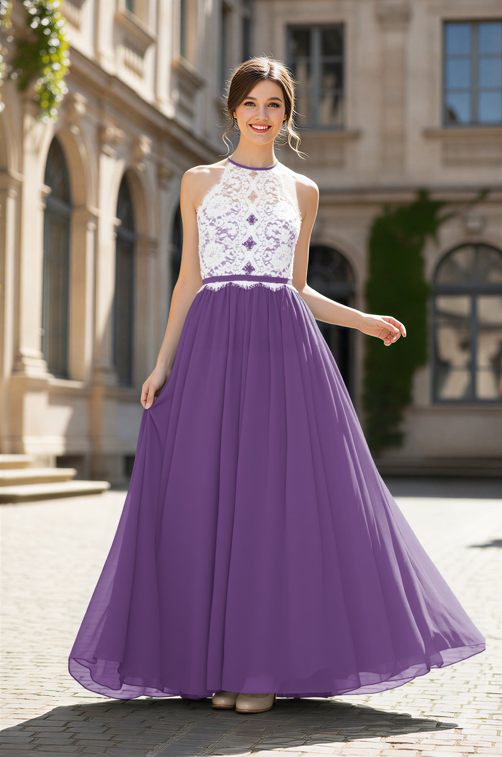 Chic Bridesmaid Dress - Lace Bodice Gown TFB 8063