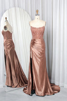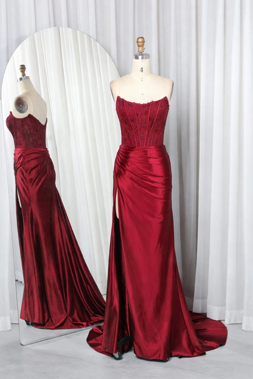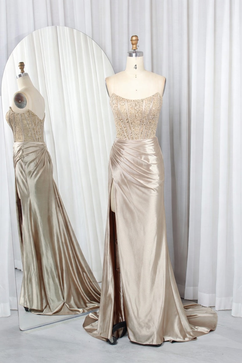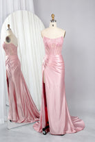 Strapless Embellished Bodice Satin Mermaid Prom Dress with High Slit TFB 8015 | blissfulprom