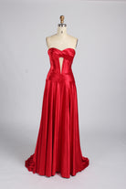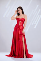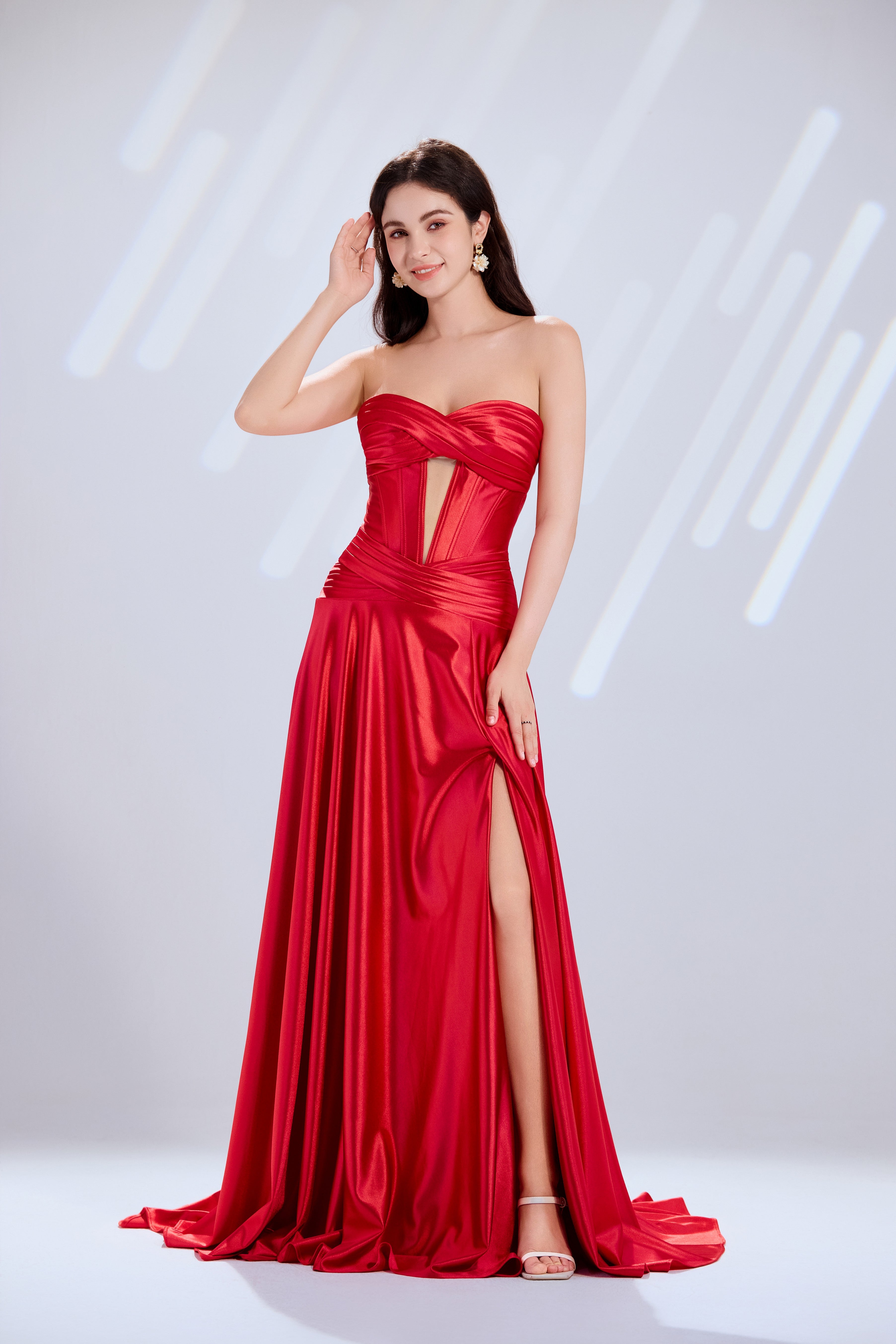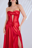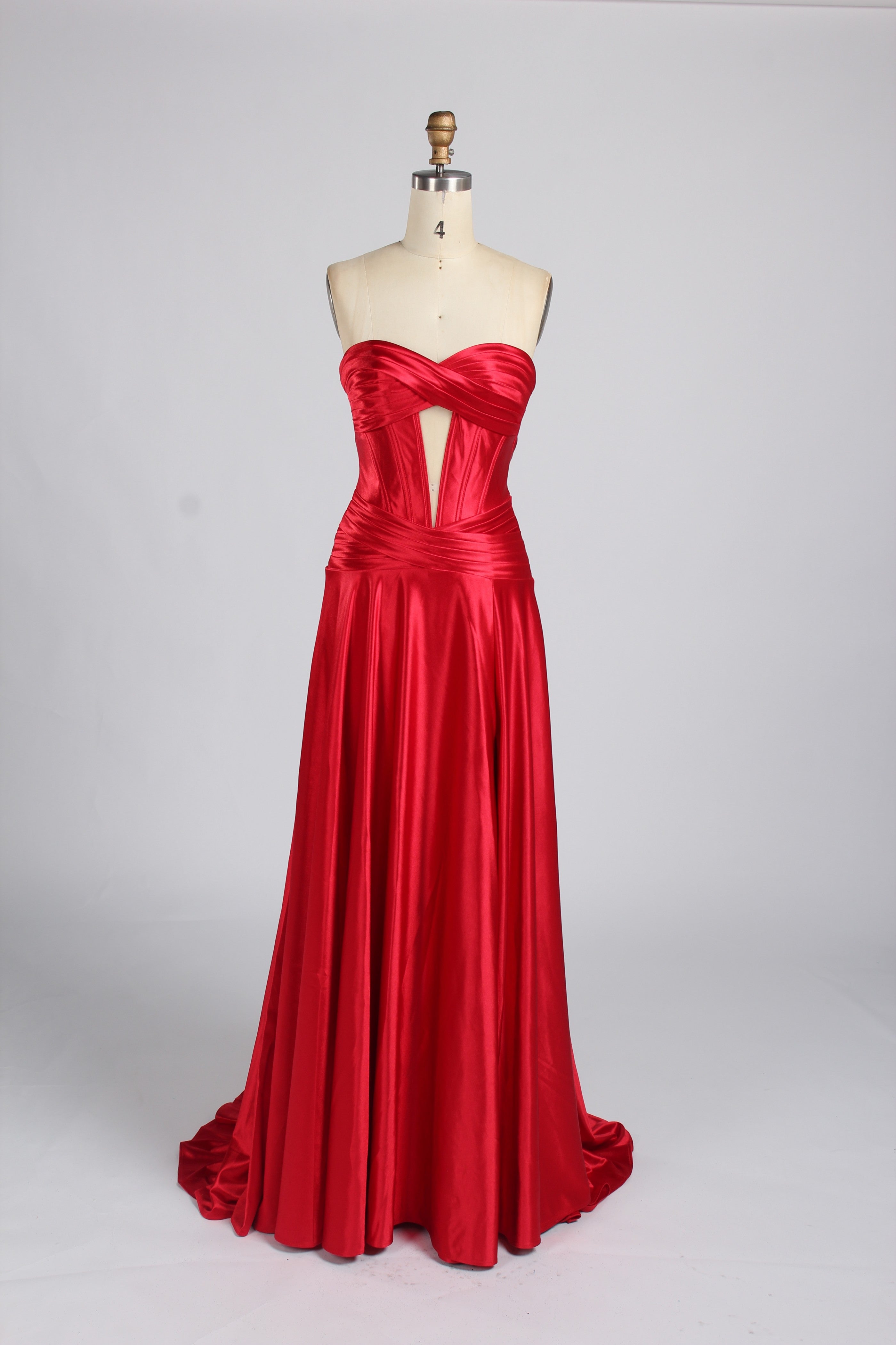 Strapless Satin Prom Dress with Crisscross Bodice, Keyhole Cutout & Train – TFB6015