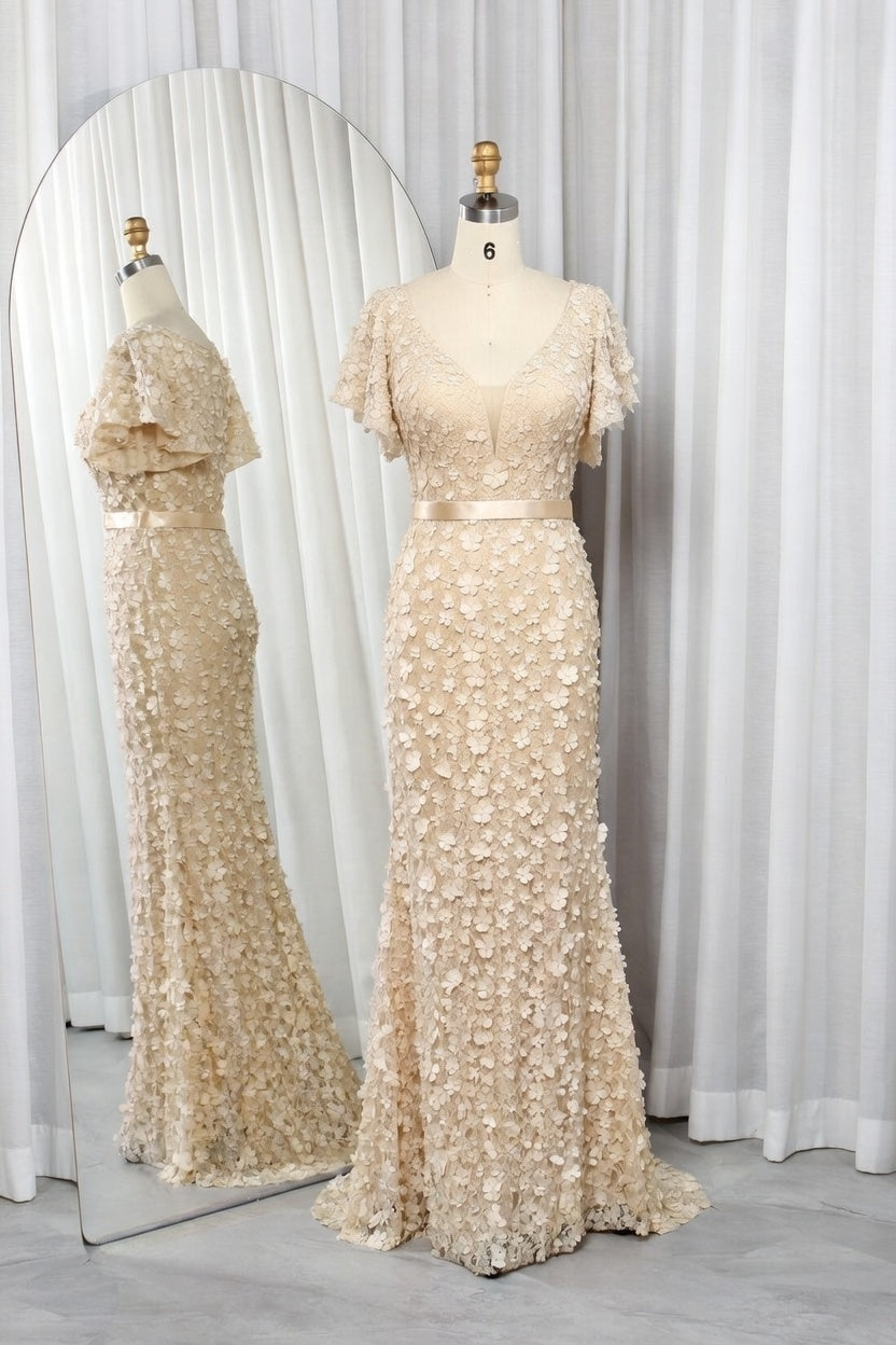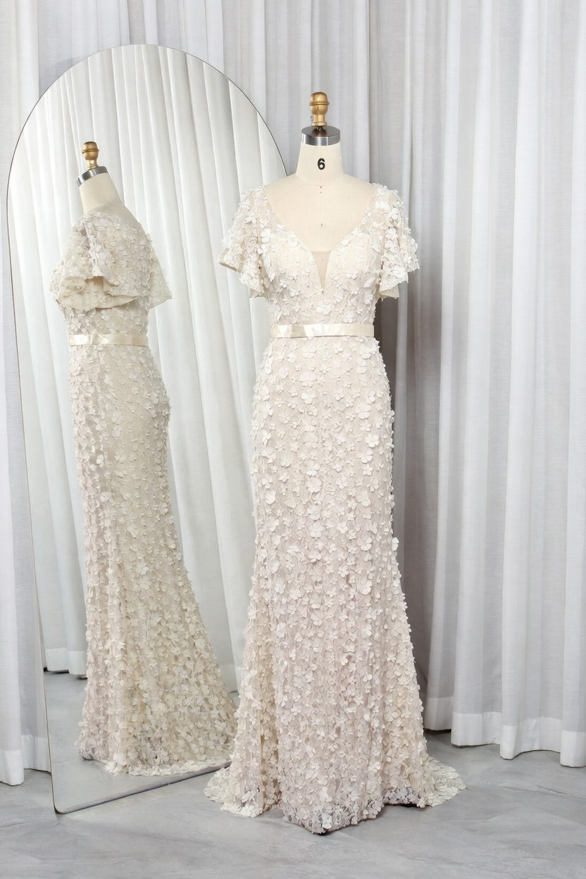 Ivory, taupe, soft beige—neutrals are timeless. They let your personality shine through accessories (think bold earrings or a colorful clutch) and won’t clash with any robe color.