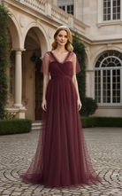 Chic Bridesmaid Dress - Off-Shoulder A-Line Gown TFB8074
