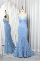 Elegant Spaghetti Strap Floral Lace Mermaid Prom Dress with Lace-Up Back-TFB8003