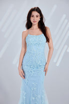 Mermaid Tulle Prom Dress with Lace Embroidery & Spaghetti Straps – TFB6007