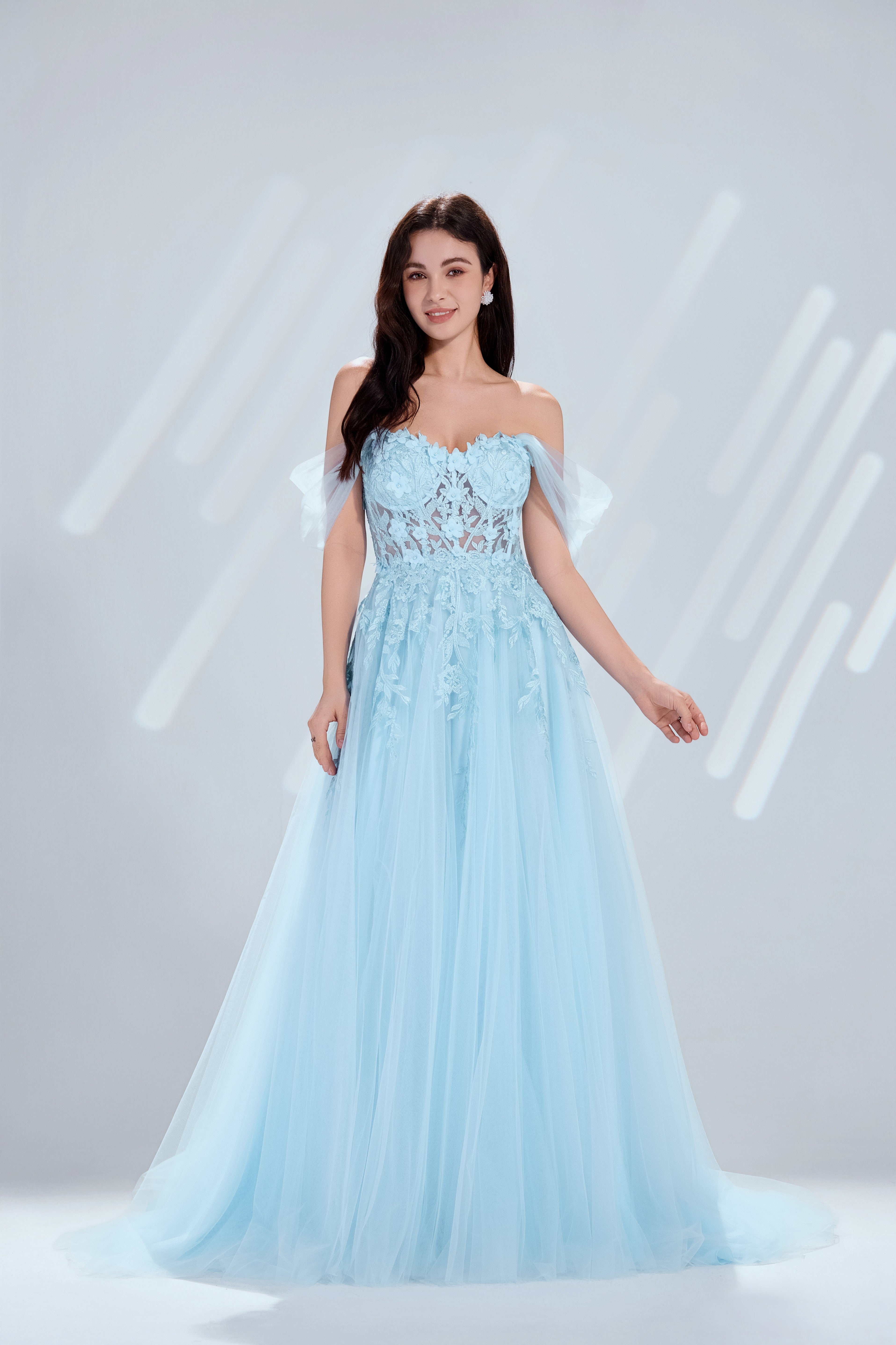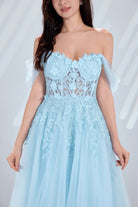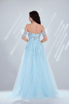 Off-the-Shoulder Lace Embellished Tulle Long Prom Dress-TFB8001