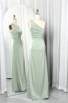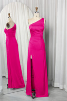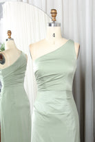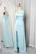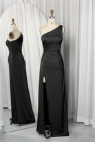 One-Shoulder Satin Prom Dress with Ruched Bodice & Side Slit – TFB6019