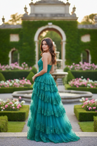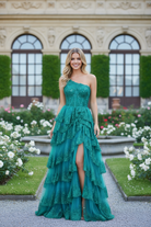 One-Shoulder Tiered Lace Prom Dress-TFB5039