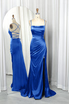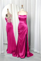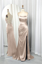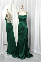 Spaghetti Strap Ruched Satin Prom Dress with Slit – TFB6003