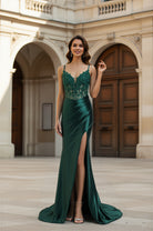 Spaghetti Strap Satin Mermaid Prom Dress with Lace Appliques-TFB8011