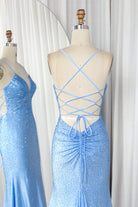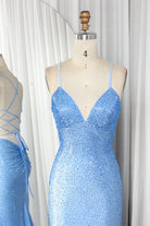 Turn heads in this satin mermaid gown, scattered with rhinestones that catch the light from every angle. The slim spaghetti straps frame a daring V-neckline, leading the eye to the intricately embellished bodice. Smooth satin drapes over the hips before flaring into a dramatic floor-length hem, while the crisscross lace-up back adds both allure and a personalized fit. Whether it’s prom night, a gala, or a red-carpet-style event, this dress promises a radiant, unforgettable entrance.