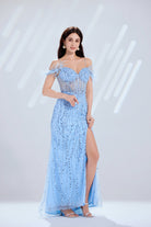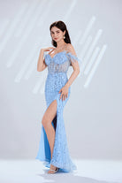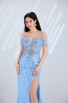 Stand out in this spaghetti strap prom dress featuring a sequin and feather-embellished bodice. The sequin-covered skirt with a side slit adds glamour and movement, making it perfect for prom nights, photos, and special celebrations where you want to shine.