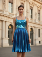 Spaghetti Strap Sequin and Pleated Homecoming Dress-TFB5004