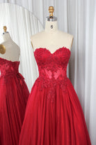 Strapless Sweetheart Tulle Ball Gown with Lace Appliques and Corset Back-TFB8005