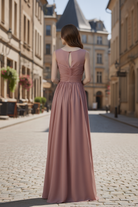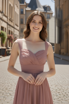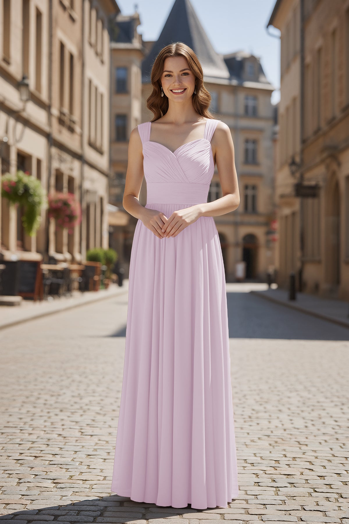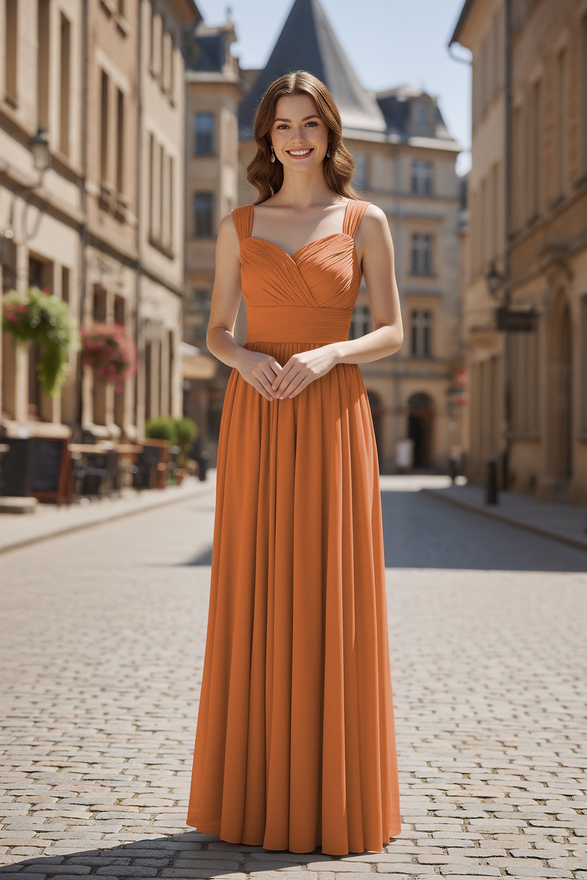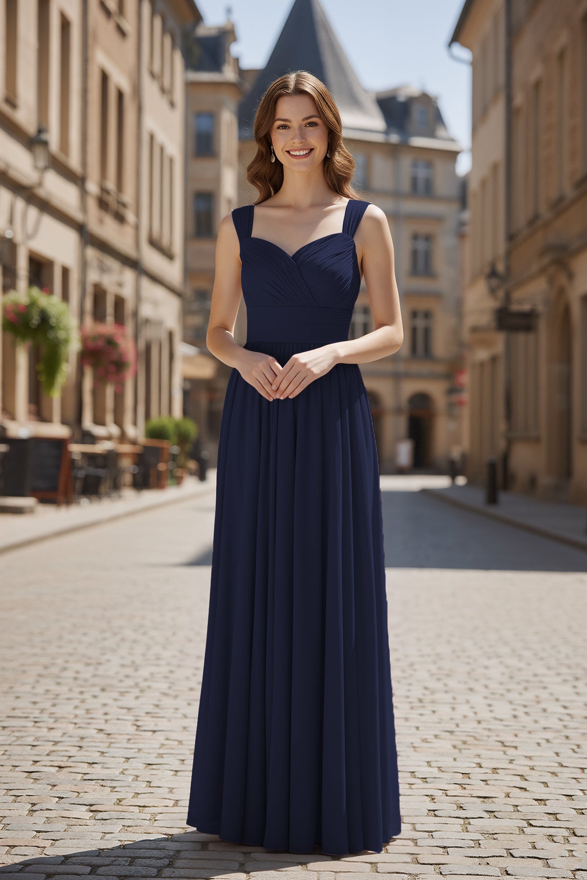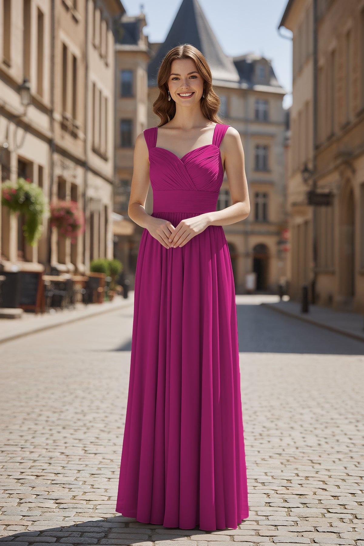 Crafted for elegance, this chiffon evening gown features a soft sweetheart neckline and a finely ruched bodice that flatters the figure. The full-length skirt flows beautifully with every step, while a subtle back slit lends a hint of allure. Perfect for proms, formal dinners, or grand celebrations, this design blends sophistication with graceful movement.